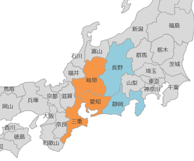 名古屋市 春日井市 一宮市 豊橋市 安城市 豊川市 西尾市 刈谷市 瀬戸市 半田市 東海市 小牧市 碧南市 日進市 常滑市 岡崎市 大府市 豊明市 愛西市 新城市 東郷町 長久手市 豊山町 武豊町 阿久比町